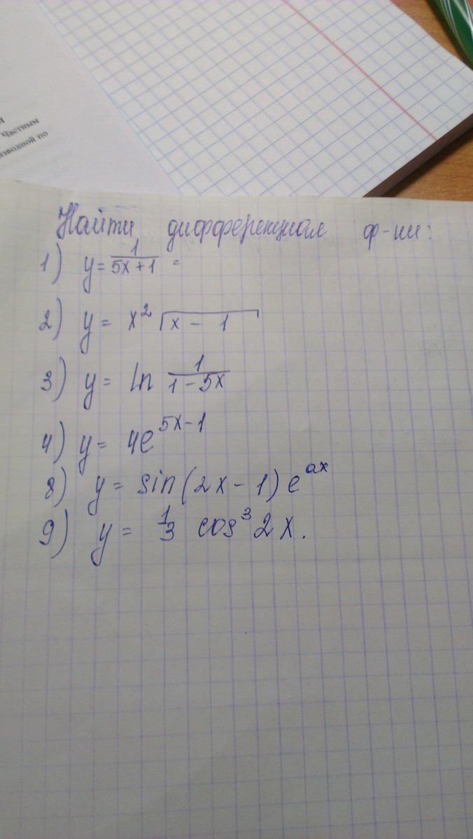 3) (ln(1/(1-5x)))'=1/(1-5x)*(-5)=-5/(1-5x)