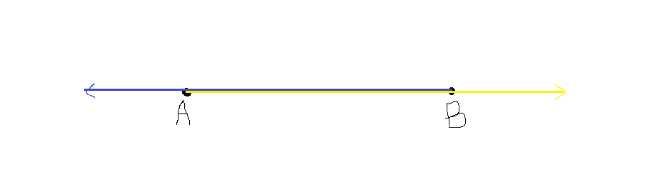Отметь точки A и B на расстоянии 5 см одна от другой. Построй желтым карандашом луч AB, а синим BA. Какая фигура является пересечением этих лучей? Опиши эту фигуру.