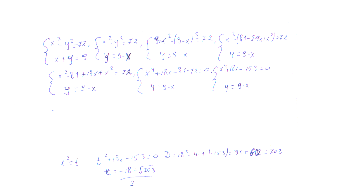 Сначала выразила у и подставила,там квадратное уравнение решишь и где положительный будет просто подставишь