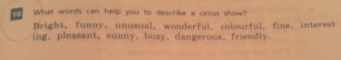 Там спрашивают: какие слова помогут описать цирковое шоу