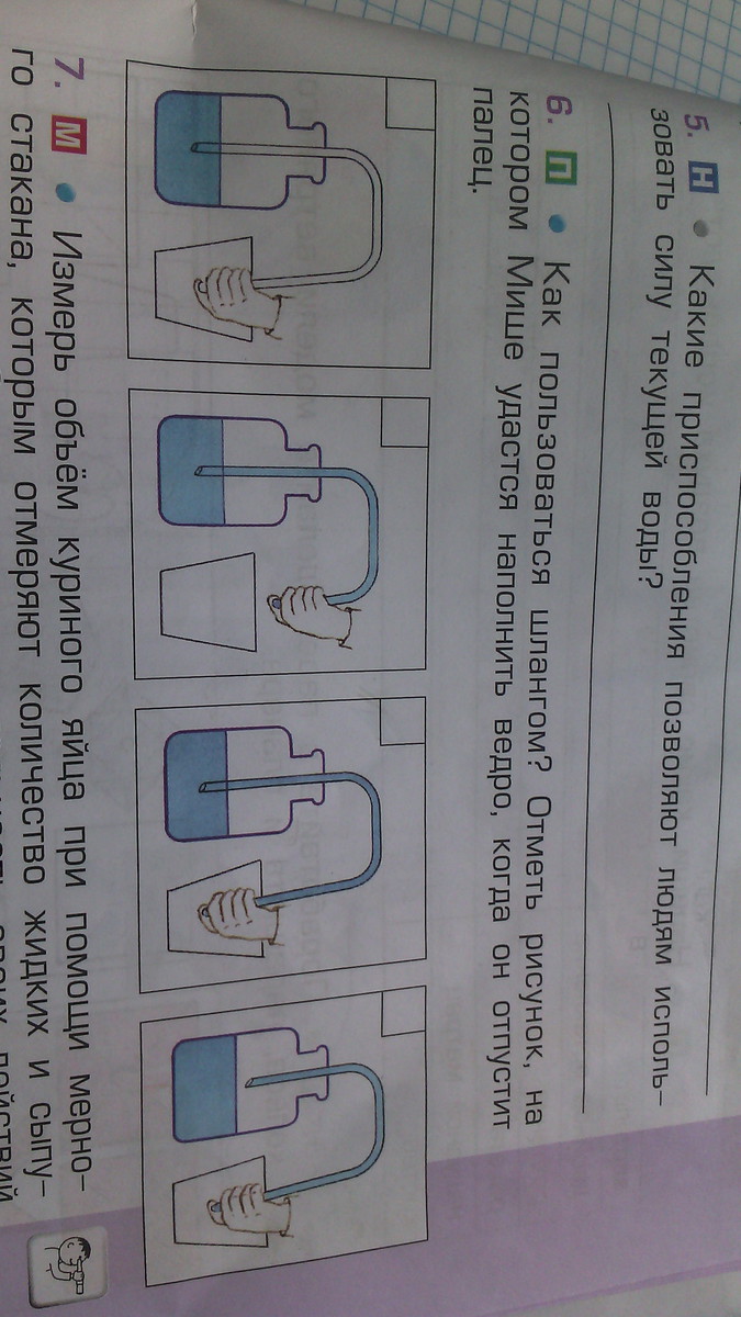 Как пользоваться шлангом отметь рисунок на котором мише удастся наполнить ведро когда он отпустит палец