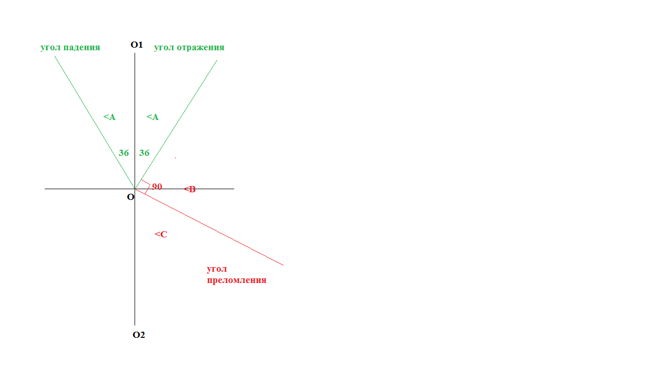 Угол падения луча света на поверхность стекла равен 36 градусов. Определите в градусах угол преломления, если отраженный и преломленный лучи взаимно перпендикулярны.