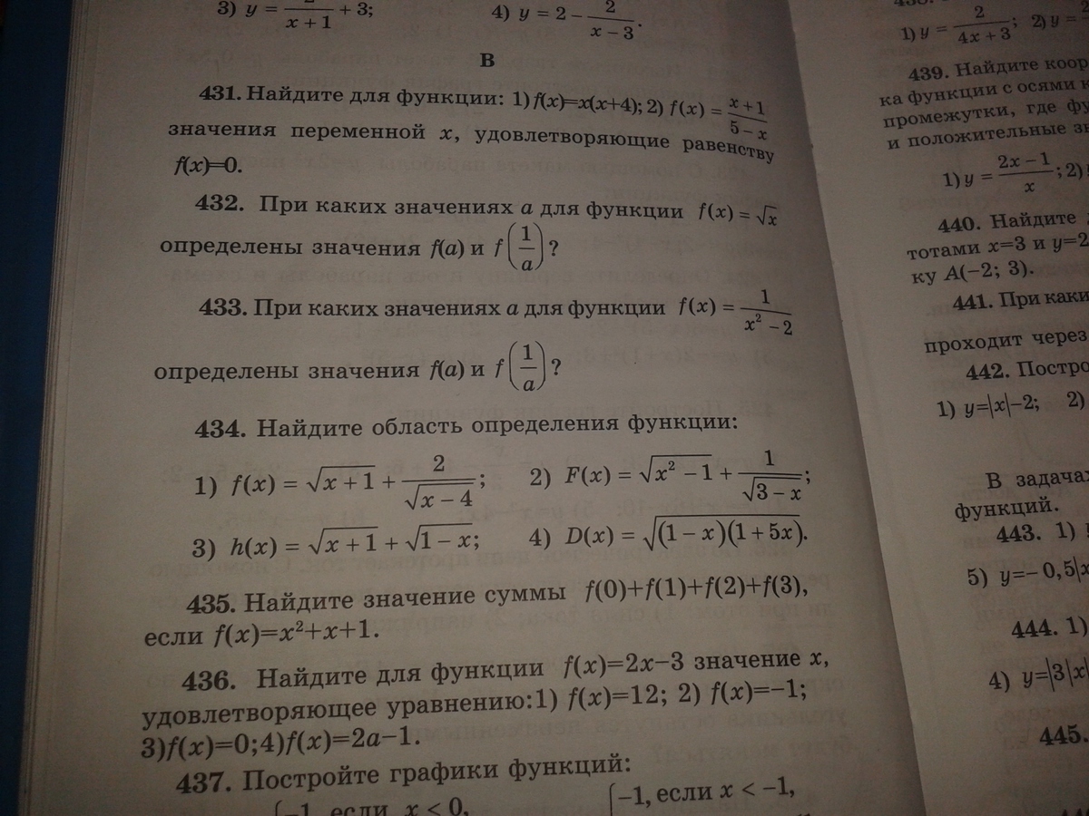 434.1) [-1;4) и (4; +беск.) 2) (-беск.;-1] и [1;3) и (3; +беск.) 3) [-1;1] 4) [-0.2;1]