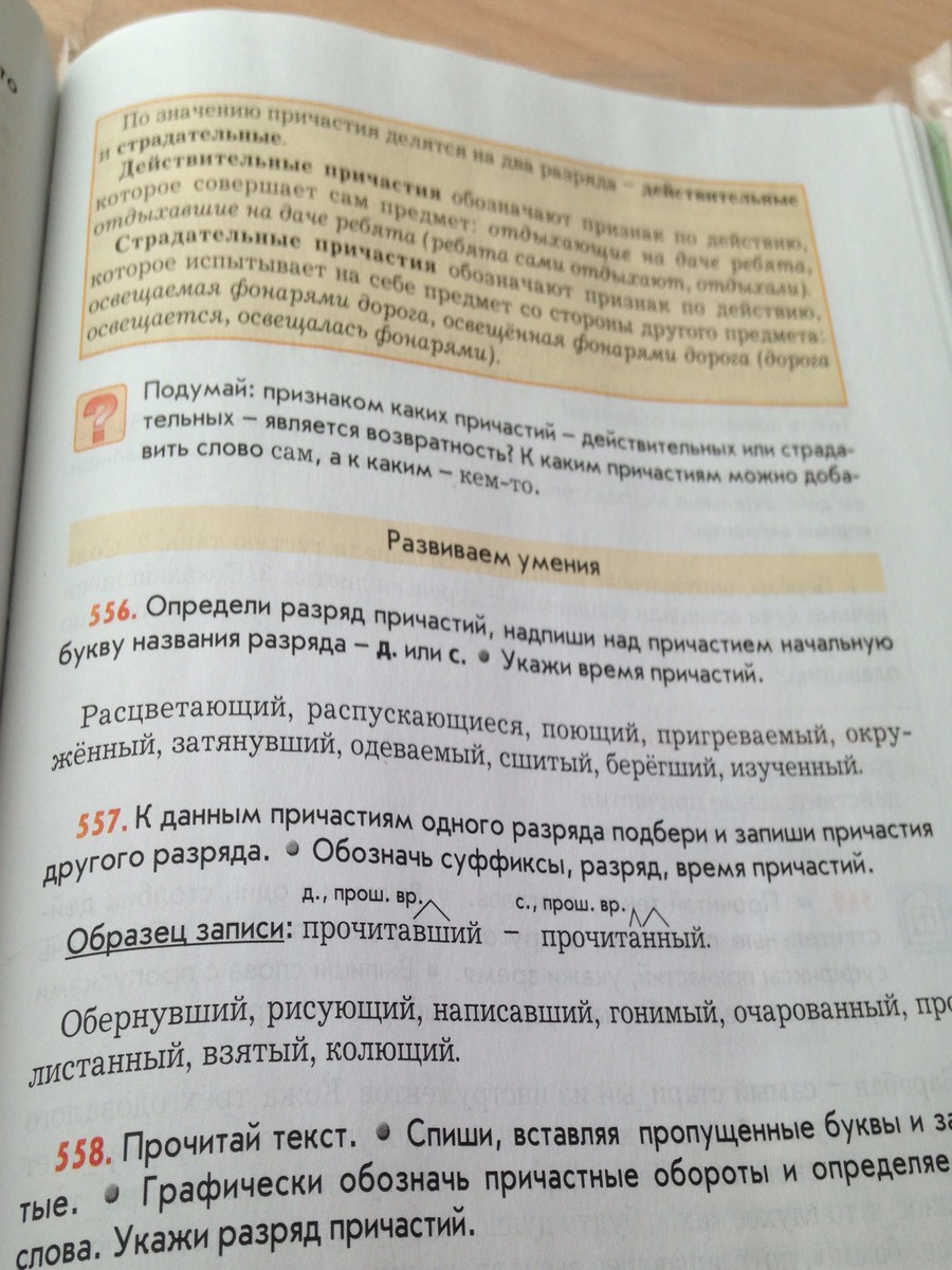 Страдательные: пригреваемый, окруженный, одеваемый, сшитый, изученный