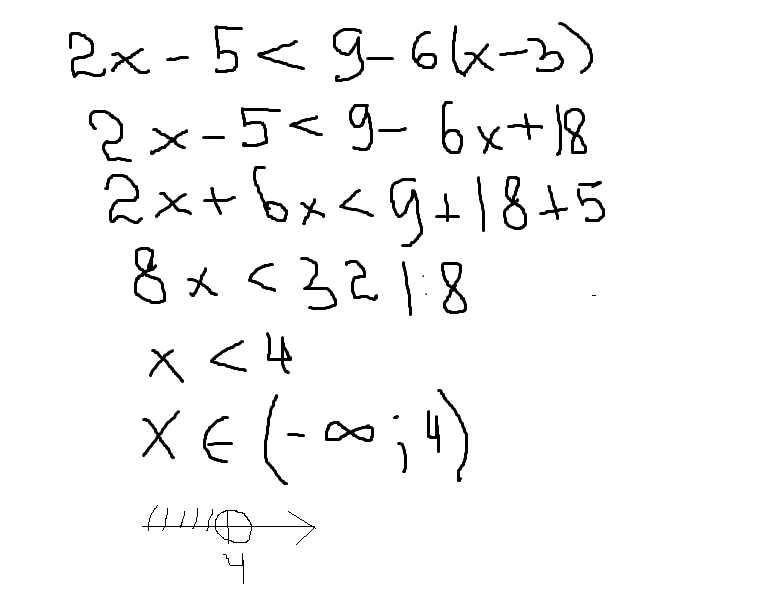 2х-5 <9-6(х-3)