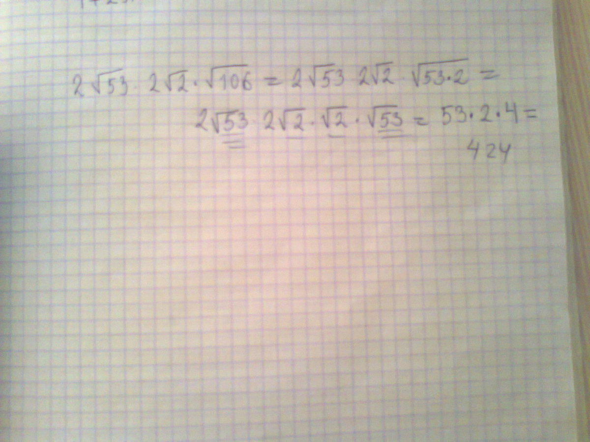 2√53*2√2*√106=2√53*2√2*√(53*2)=2√53*2√2*√2*√53=2√53²*2√2²=2*53*2*2=424