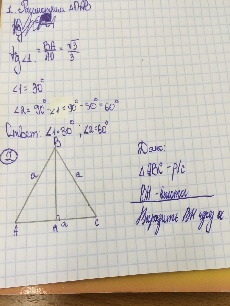 ВН=√(АВ^2-AH^2)= √(a^2- (a/2)^2)= √(a^2- a^2/4)= √(3 a^2)/4=a * √ 3 / 2