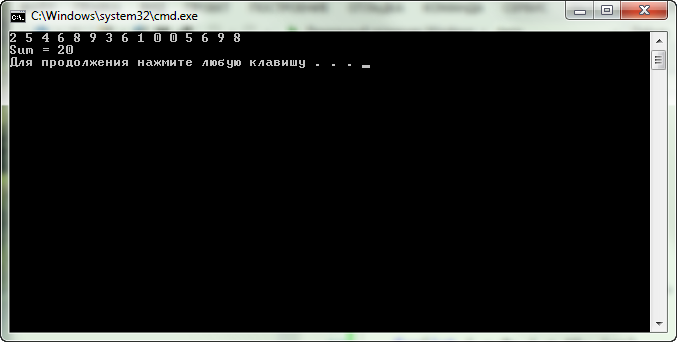 int a[15] = { 2, 5, 4, 6, 8, 9, 3, 6, 1, 0, 0, 5, 6, 9, 8 };