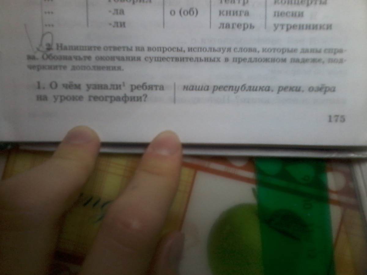 Напишите ответы на во, используя слова, которые даны справа.Обознасьте окончание существительных в предложном падеже, подчеркните дополнения