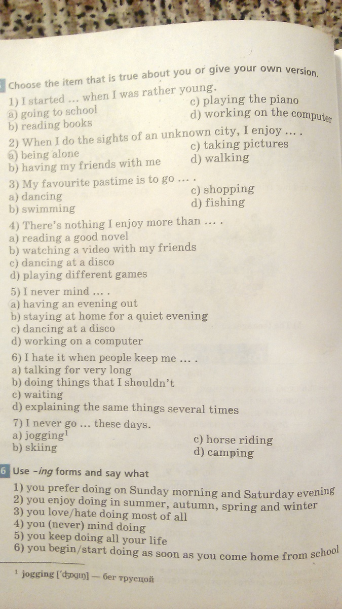 тут спрашивается твоё собственное мнение, я бы ответила так: 1b, 2d, 3b, 4a, 5c, 6d, 7d
