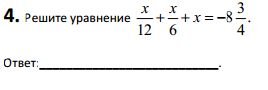 1/12 x+ 1/6 x+ x= -8ц 3/4; умножаем все на 12; обе части; х+2х+12х=-105; 15х=-105; х=-105:15; х= -7;.