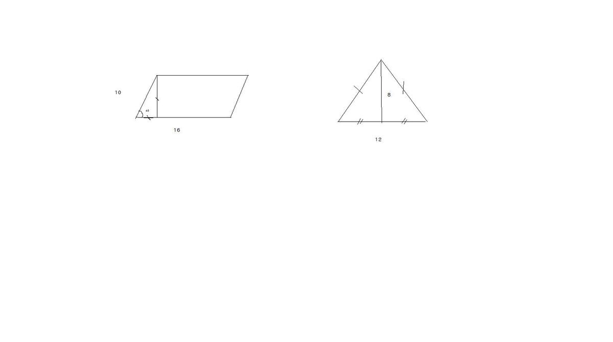1.Найдите площадь параллелограмма, стороны которого образуют угол 45 и равны 10 см и 16 см.