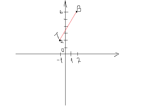 d=√(x2−x1)^2+(y2−y1)^2-√((-1)-2 )²+(2-6)²=√9+16=√25=5