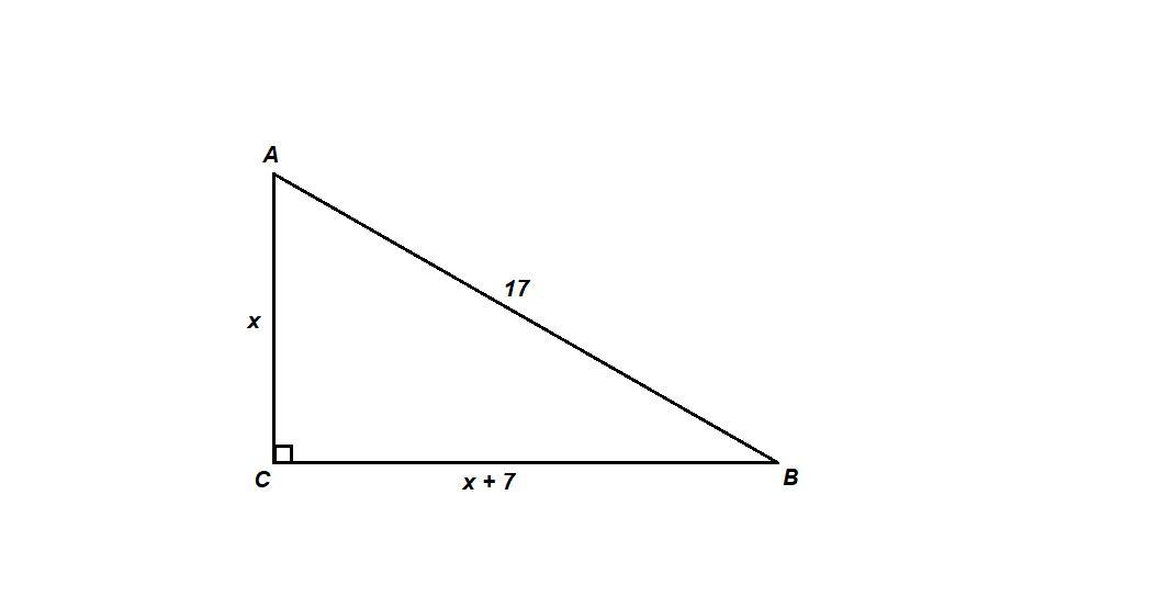 Найти катеты прямоугольного треугольника если один из них на 7 см меньше другого а гипотенуза равна 17