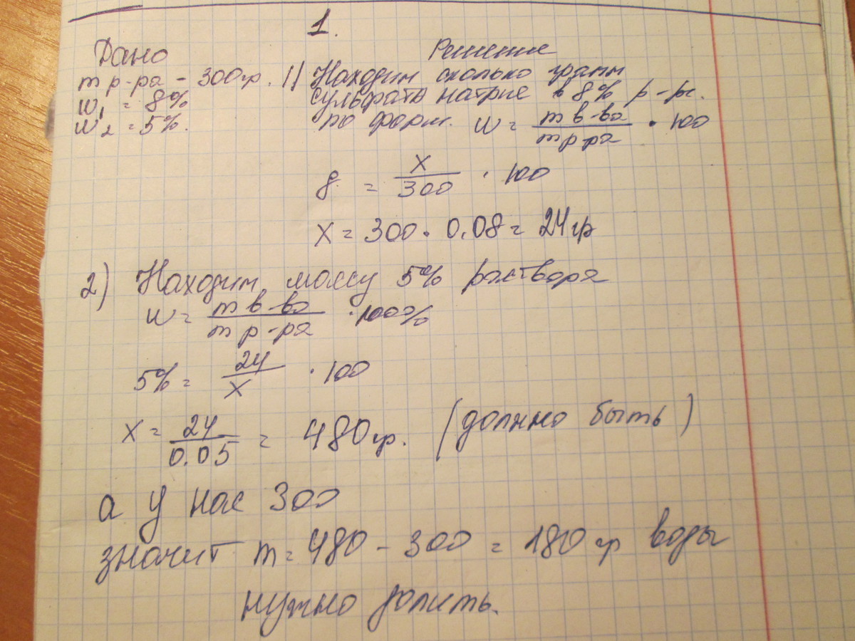 1)Для получения 5% раствора сульфата натрия к 300 г 8% раствора сульфата натрия,нужно добавить -грамм воды?