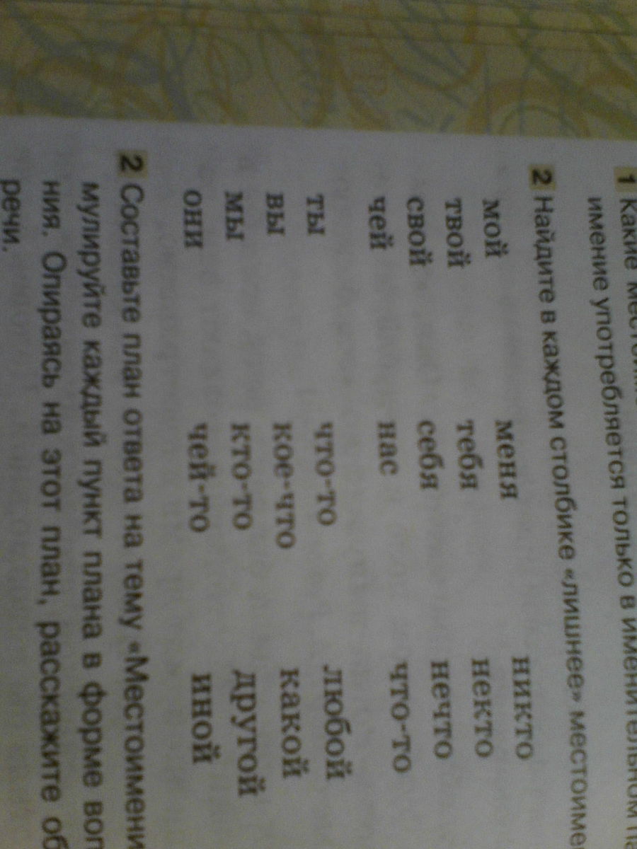 найдите в каждом столбике лишнее местоимение,объясните почему?
