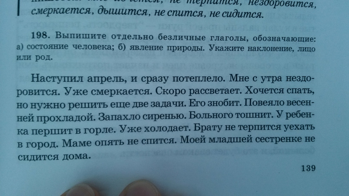 а) нездоровиться,знобит,тошнит,першит,изъяв ,накл,3 лицо,не терпится,не сидится-хочется,не спится..