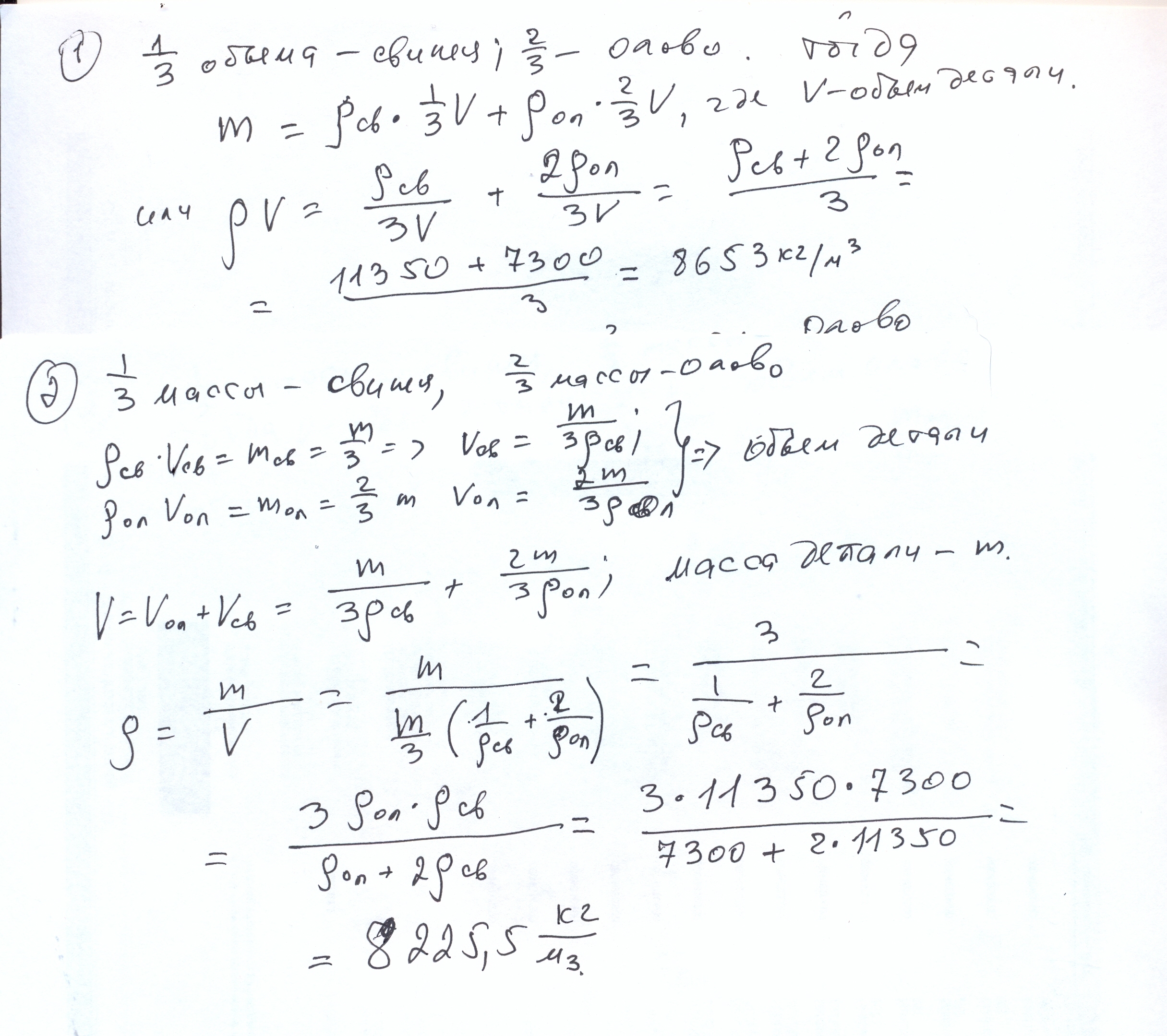 Некая деталь на 1/3 сделана из свинца,на 2/3-из олова.Какова средняя плотность материала,из которого сделана деталь?