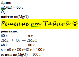 вычислите массу оксида магния образовавшегося в результате взаимодействия магния с массой 60 г с достаточным количеством кислорода
