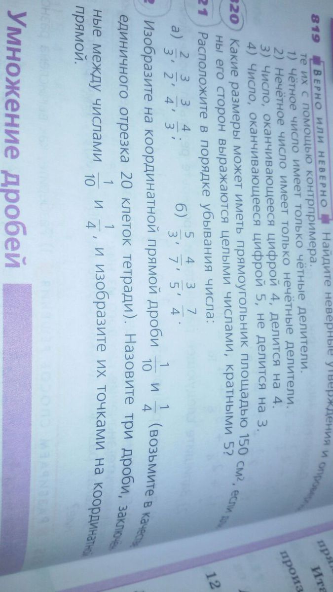 822. Рисуем 20 клеток. Отмечаем 2клетки это 1/10; потом отмечаем 5клеток это 1/4; потом отмечаем 3клетки это 3/20; потом 4клетки это 1/5; или 4клетки это 4/20.