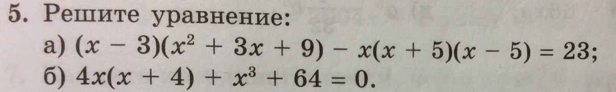 А) (х-3)(х^2+3х+9)-х(х+5)(х-5)=23