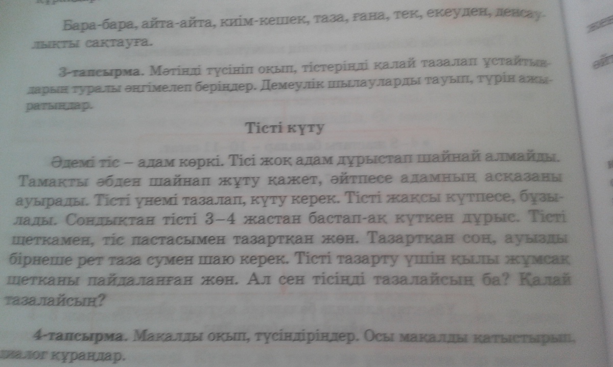 Красивые зубы-это внешность человека. У человека которого нету зубов, не может нормально питатся.Еду нужно сначала хорошо пожувать, а то, у человека будет болеть желудок.Зубы нужно постоянно чистить, и ухаживать. Если за зубами не ухаживать, то зубы исчерпаются. Именно зубы нужно беречь в 3-4годика. Зубы щетками, зубной пастой, нужно ухаживать.После очистки зубов, нужно хорошенько сполоснуть водой.Чтобы почистить зубы нужно мягким щеткой чистить.А ты зубы чистиеш? Как чистиеш?