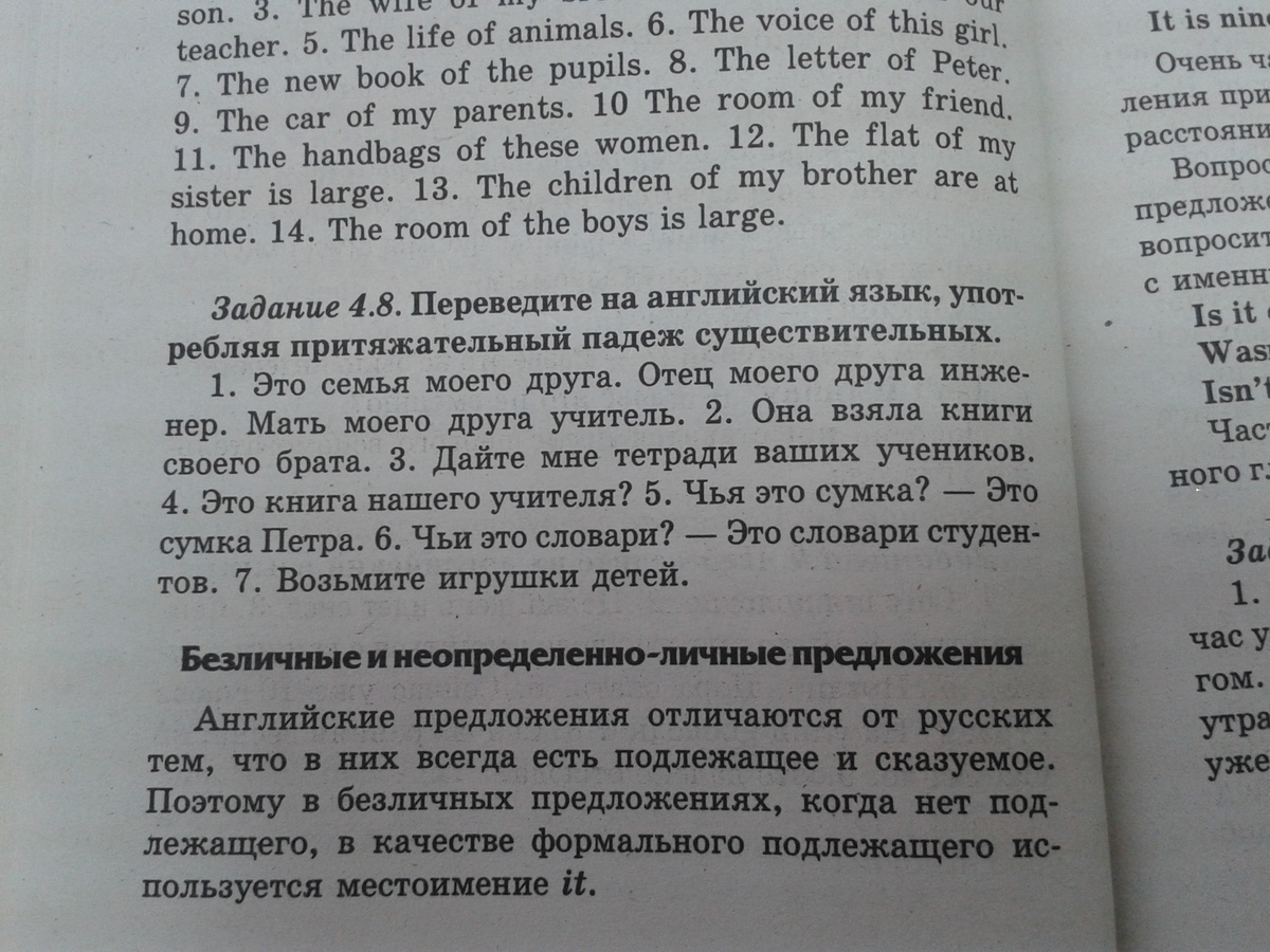 задание 4.8 . Переведите на английский язык, употребляя притяжательный падеж существительных