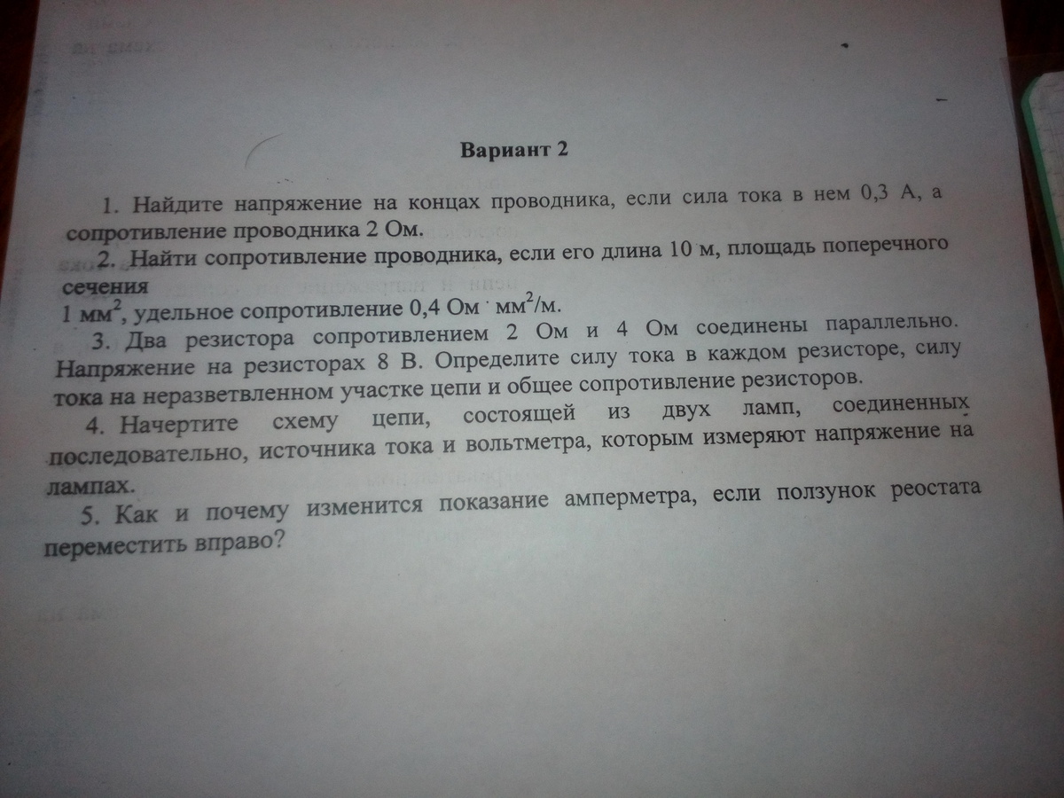 найдите напряжение на концах проводника, если сила тока в нём 0,3 А, а сопротивление проводника 2 Ом
