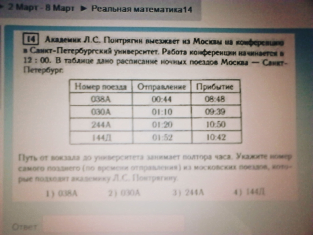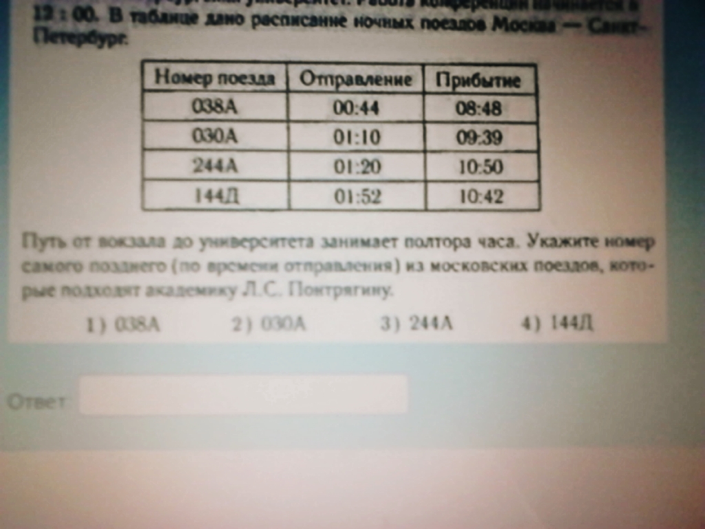 самый поздний поезд это 030А