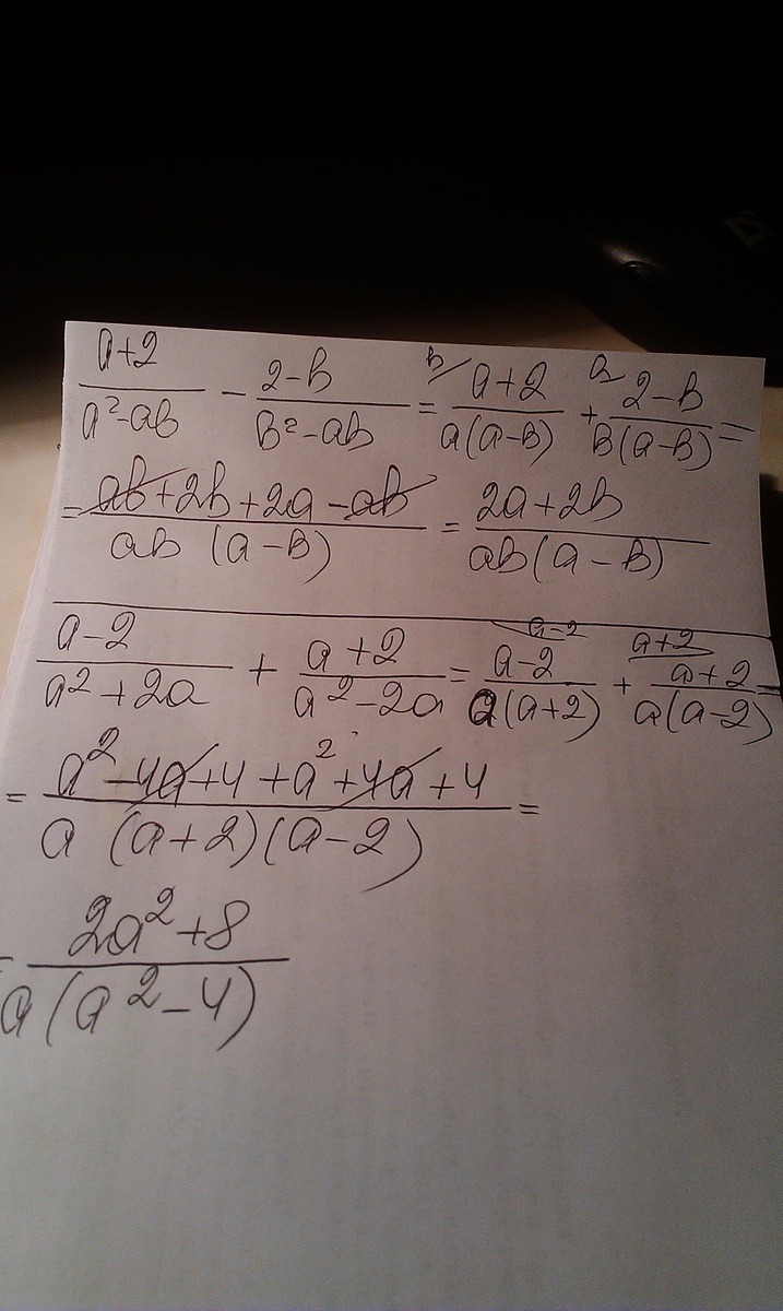 4)(a+2)/a(a-b)+(2-b)/b(a-b)=(ab+2b+2a-ab)/ab(a-b)=2(a+b)/ab(a-b)