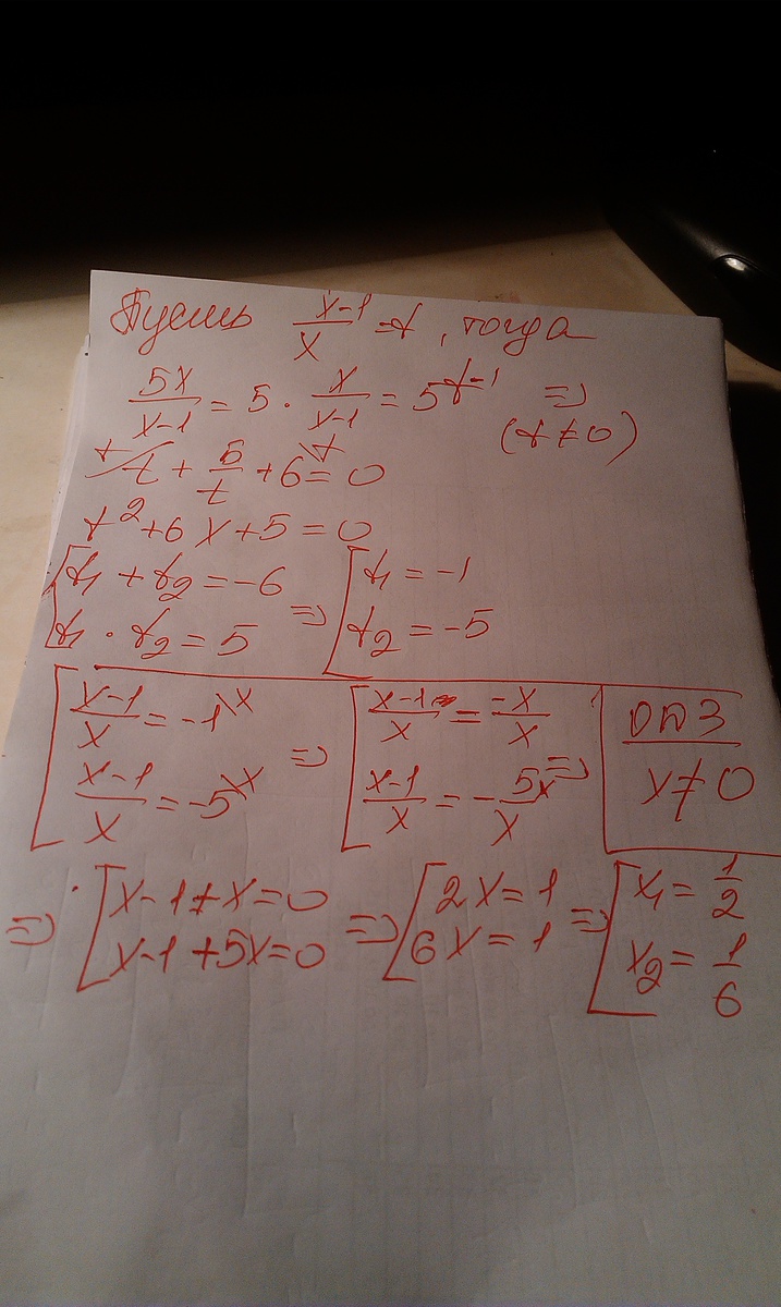 frac{x-1}{x} + frac{5x}{x-1} +6=0