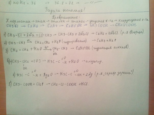 Хлорметан-этан-этилен-этанол-уксусная кислота-хлоруксусная кислота
