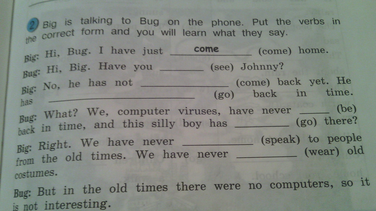 Большой говорит ошибка на телефоне.Поставьте глаголы в правильную форму и вы узнаете что они говорят. Помогите пожалуйста!!!