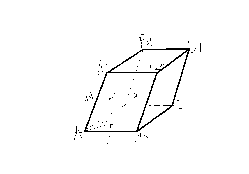 основанием наклонного параллелепипеда является квадрат со стороной 15 см боковое ребро равно 14 см и образует с прилижащими сторонами остре углы.Расстояние между соответствующими сторонами двух оснований равно 10 см.Найдите объем.