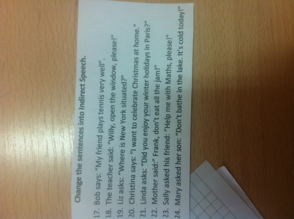 5) Linda asked me if i had enjoyed my winter holidays in Paris.