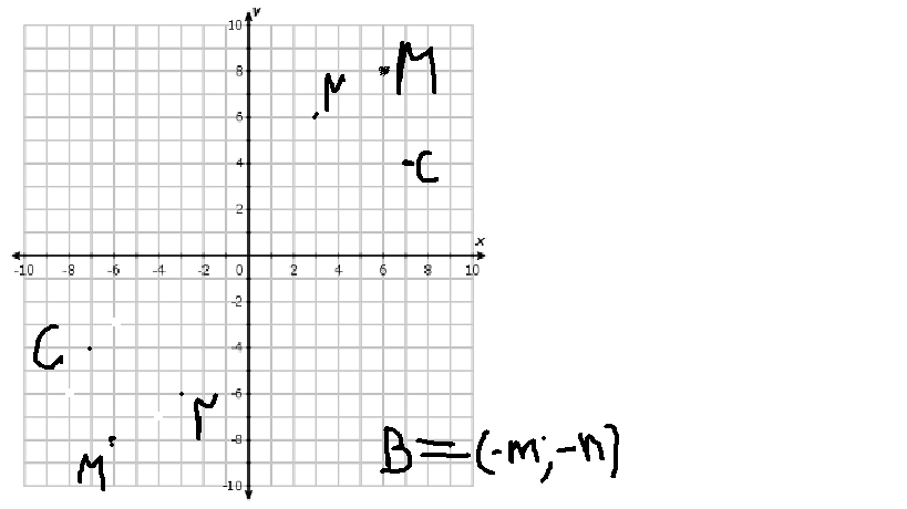 а)отметьте на координатной плоскости несколько точек.постройте точки симметричные отмеченным отновительно начало координат.