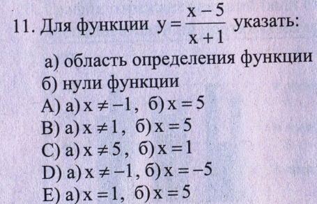 область определения-вариант а) х не равен -1, х=5