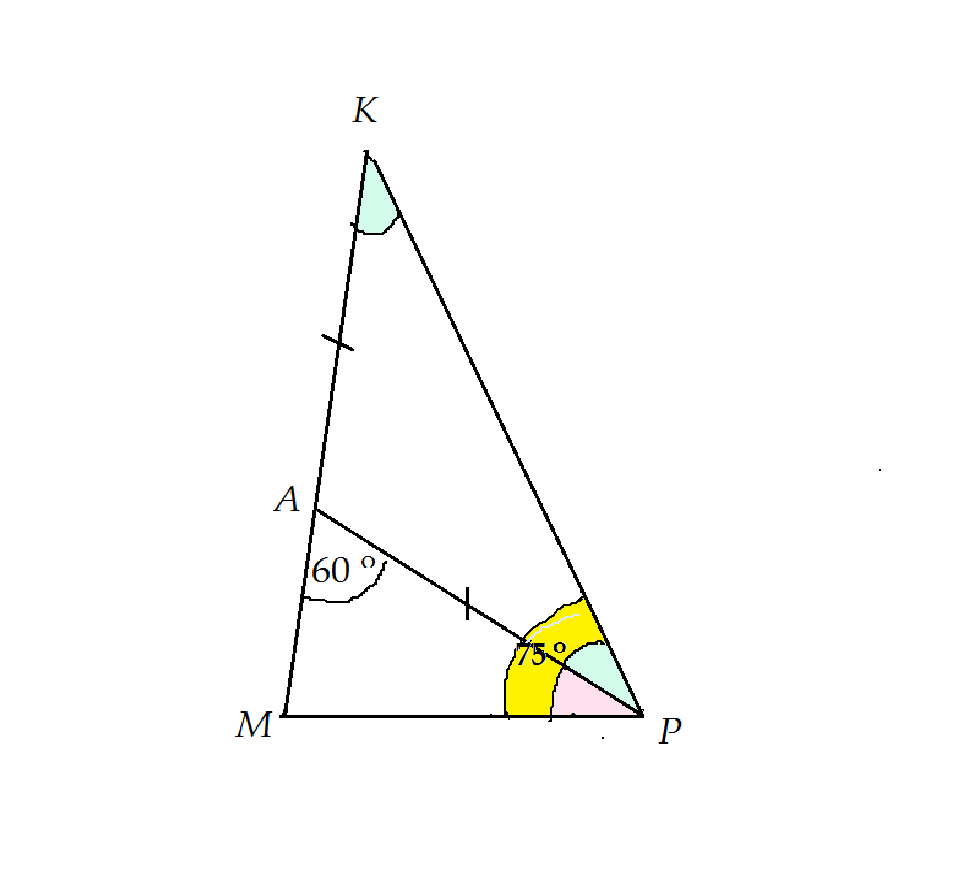 и угол АРМ=75°-30°=45°