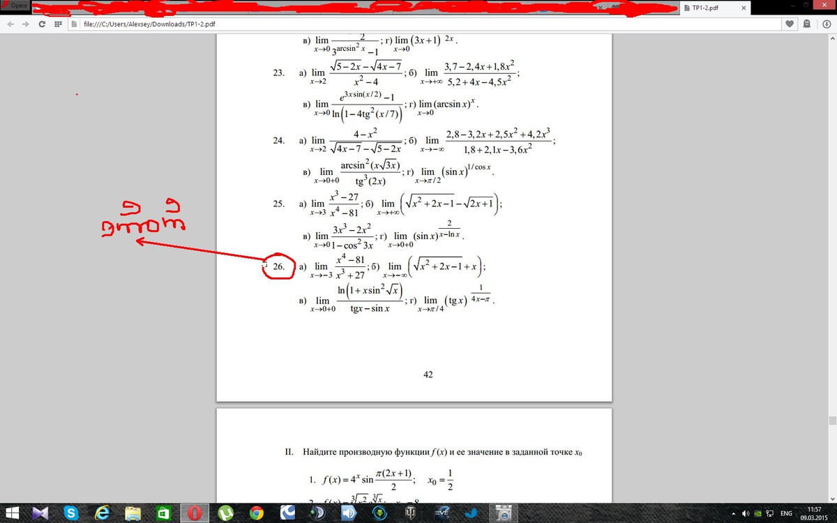 I. Вычислите пределы: а), б), в) – без применения правила Лопиталя;