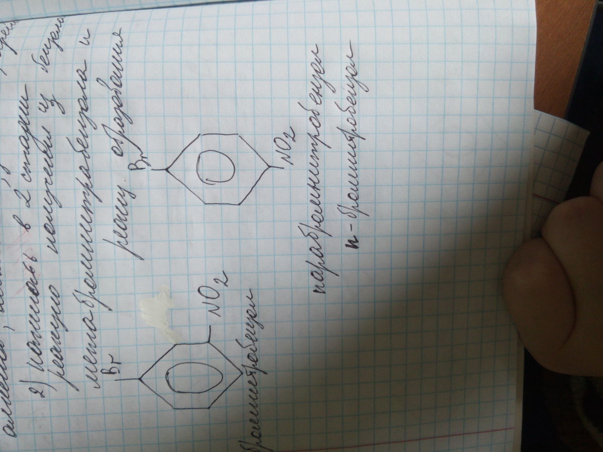 ХИМИКИ ПОМОГИТЕ ПОЖАЛУЙСТА!ОРГАНИКА! написать в две стадии реакцию получения из бензола металбромнитрабензола и реакцию образования