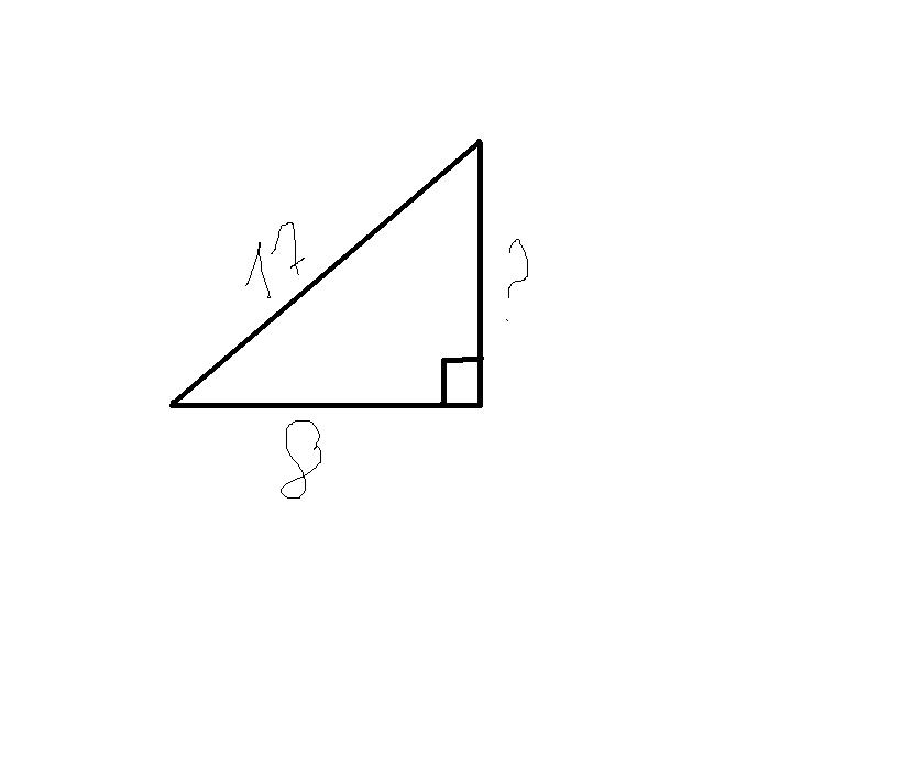 по теореме пифагора 17^2 - 8^2=225 корень из 225=15