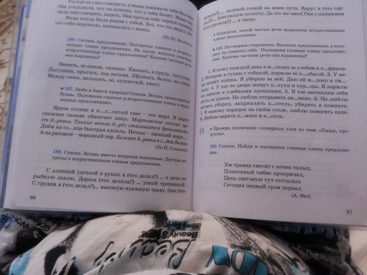 Белеют деревья в седой дымке. Белеют - сказуемое, деревья - подлежащее, седой - определение, дымке - дополнение.