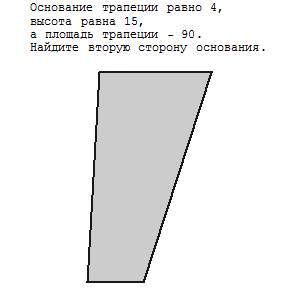 Основание трапеции равно 4, высота 15, а площадь трапеции 90. Найдите вторую сторону основания