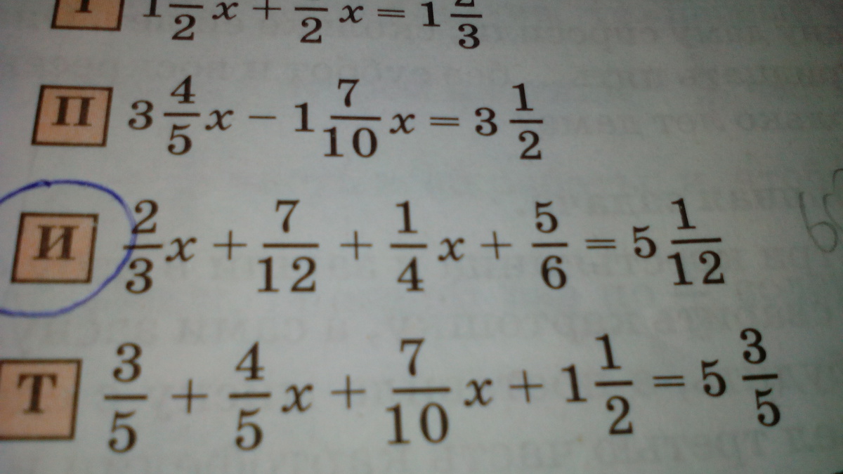 ВОТ САМ ПРИМЕР:2/3×+7/12+1/4×+5/6=5 1/12