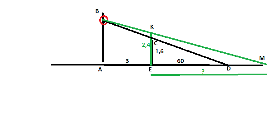 АВ=ЕС*АД/ЕД=(1,6*(3+60))/60=1,6*63/60=1,6*1,05=1,68м-высота столба