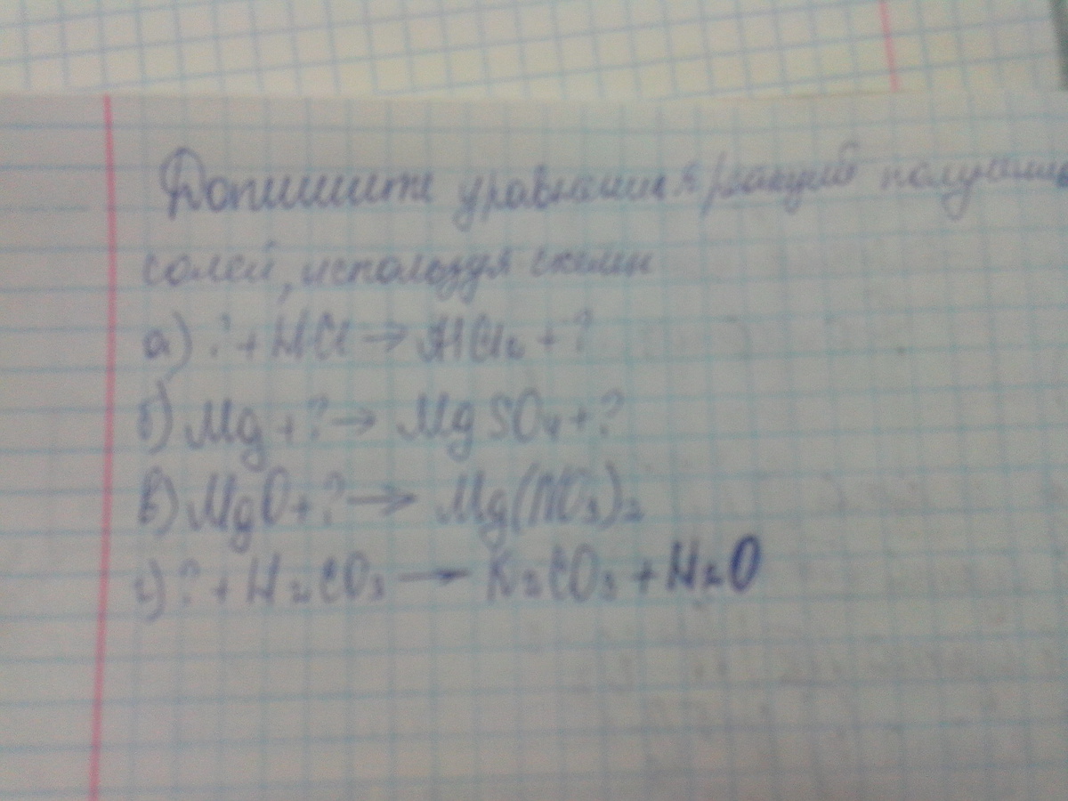 Допишите уравнения реакций получения солей, используя схемы а)?+HCl= AlCl2+?