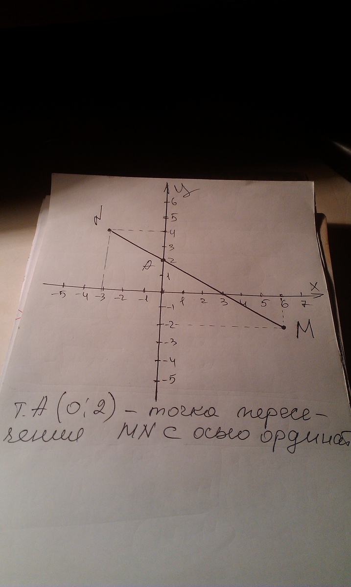 Проведите отрезок МN . Найдите координаты точки пересечения отрезка MN с осью ординат.