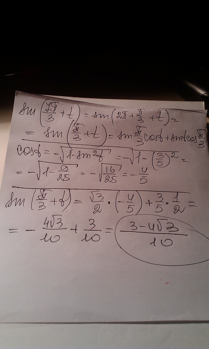Найти sin(7пи/3 + t), если sint = 3/5 и t принадлежит [пи/2, пи].