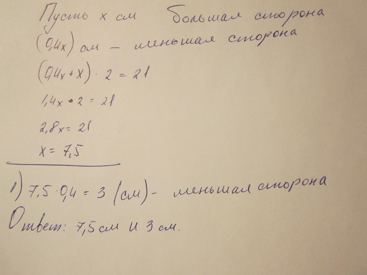 периметр прямоугольника, одна сторона которого составляет 40% другой, равен 21 см. Найдите стороны прямоугольника