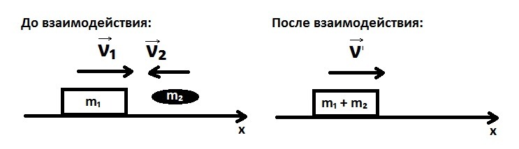 m₁v₁ + m₂v₂ = v'(m₁ + m₂)